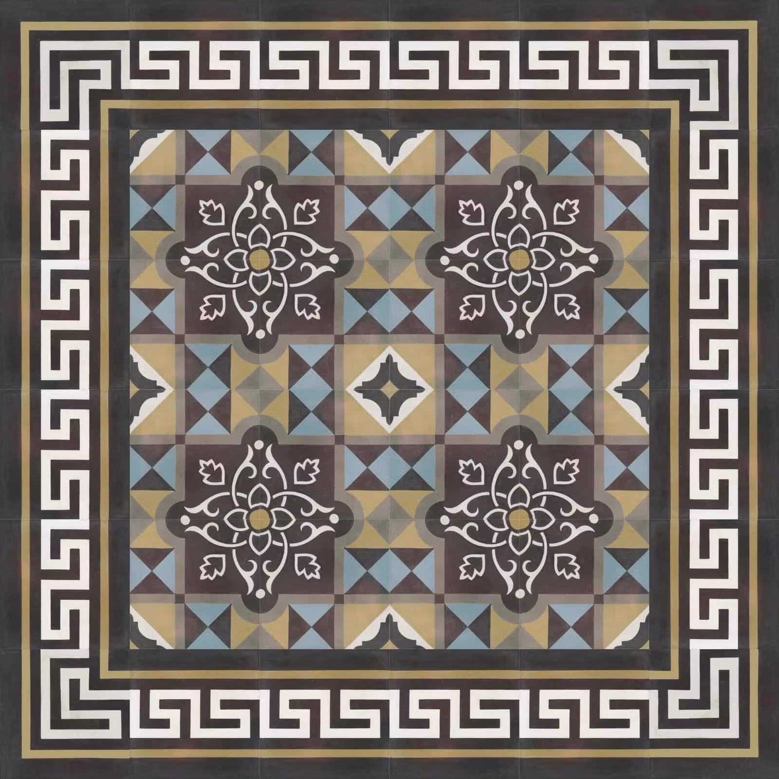 - Färger i plattan: 60 black, 71 ocher, 01 white, 54 grey-brown, 51 grey-blue