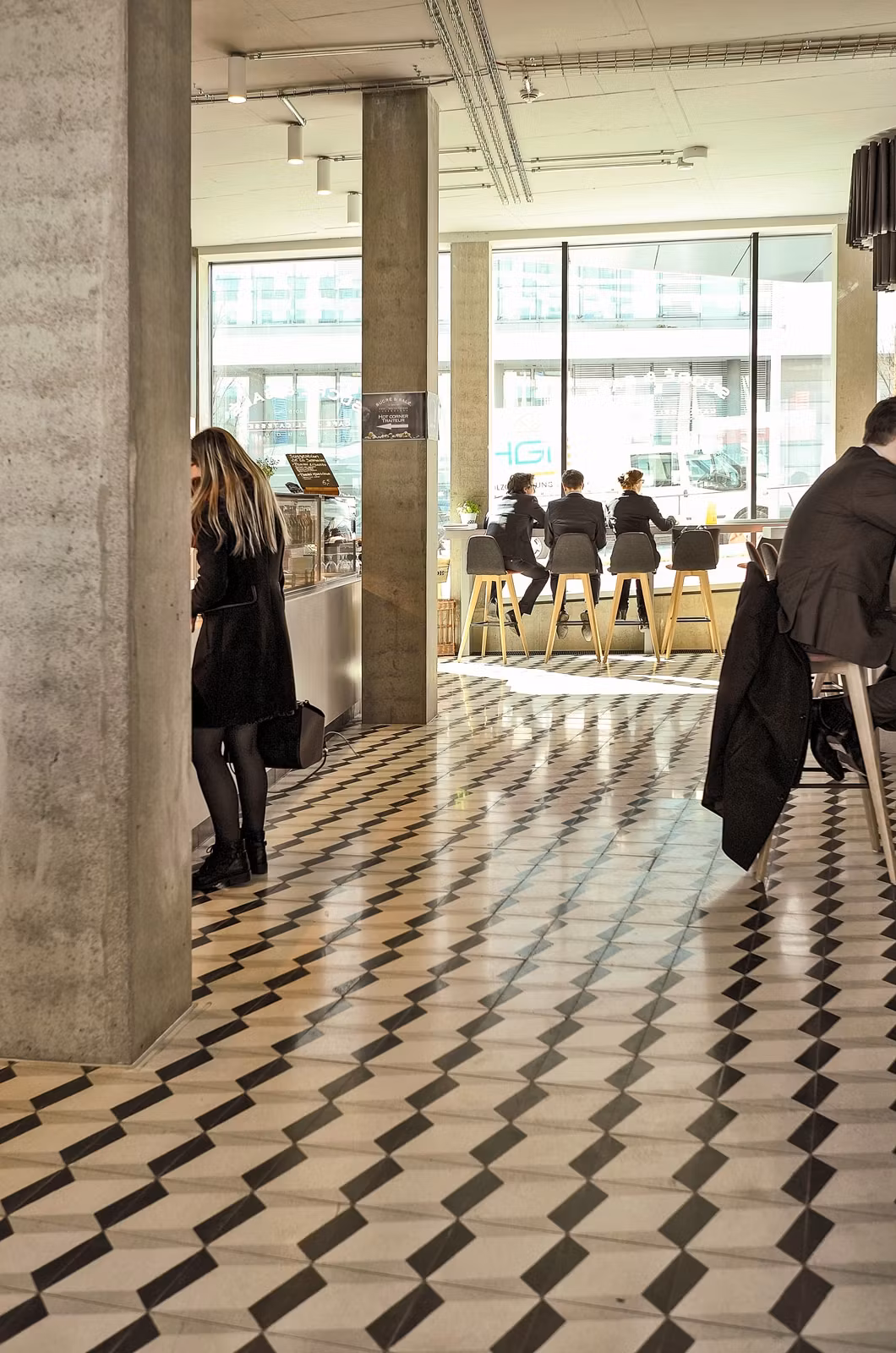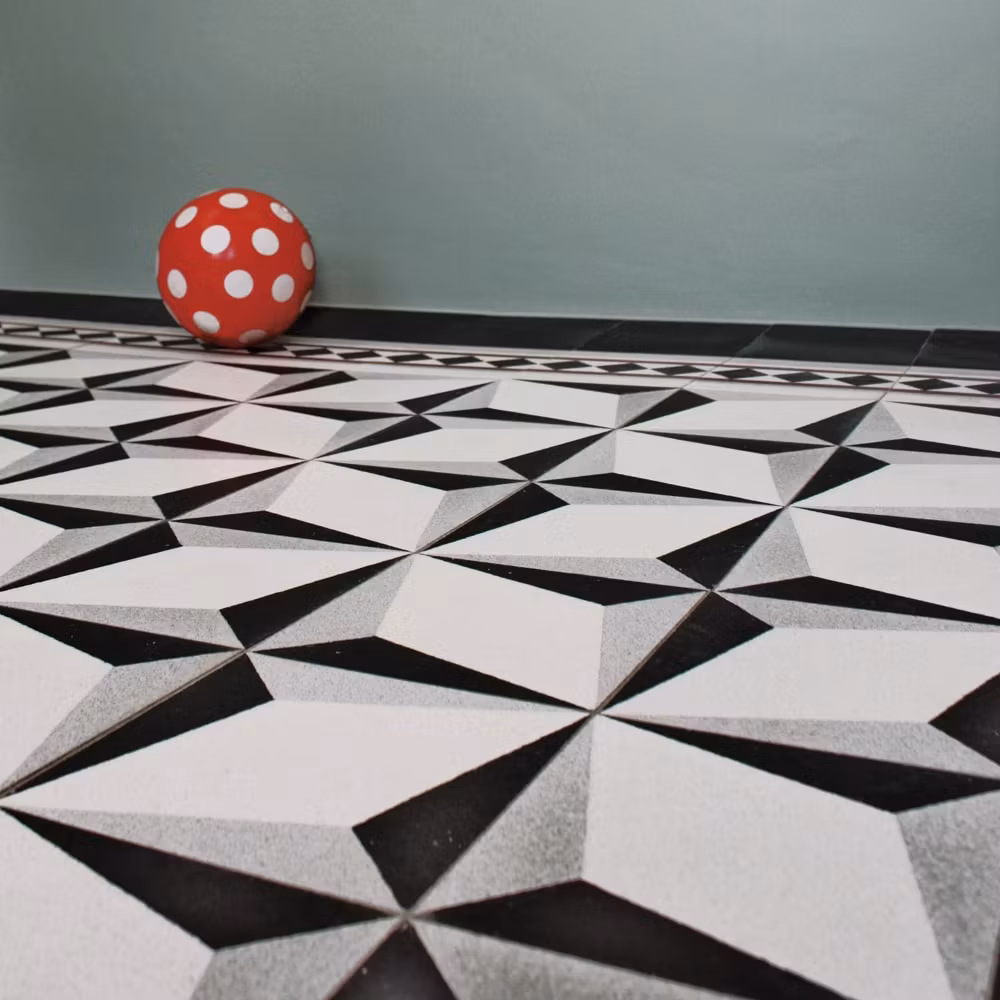 Den karakteristiska granuleringen gör att mönstren på terrazzoplattor inte ser exakt likadana ut.