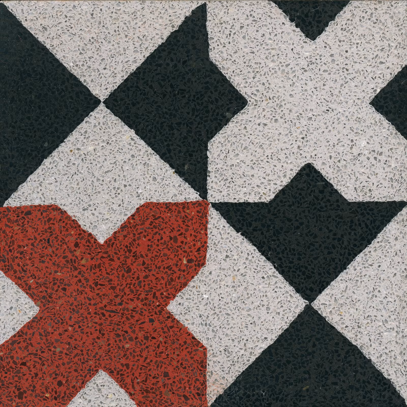 Den karakteristiska granuleringen gör att mönstren på terrazzoplattor inte ser exakt likadana ut.