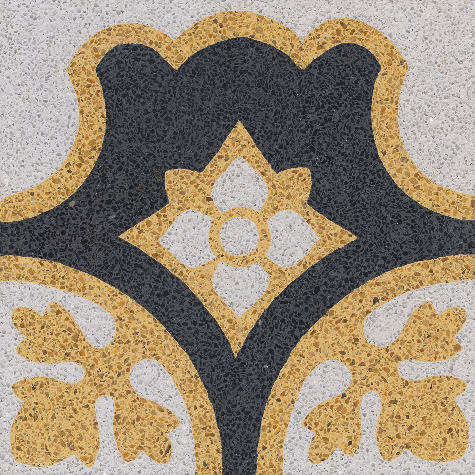 Den karakteristiska granuleringen gör att mönstren på terrazzoplattor inte ser exakt likadana ut.