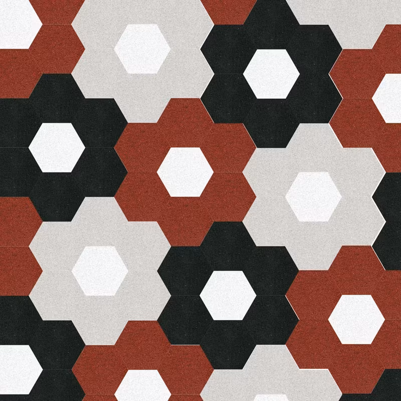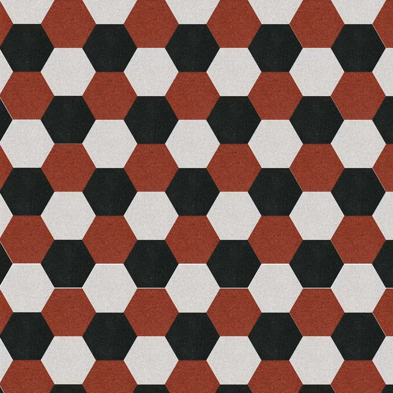 Den karakteristiska granuleringen gör att mönstren på terrazzoplattor inte ser exakt likadana ut.