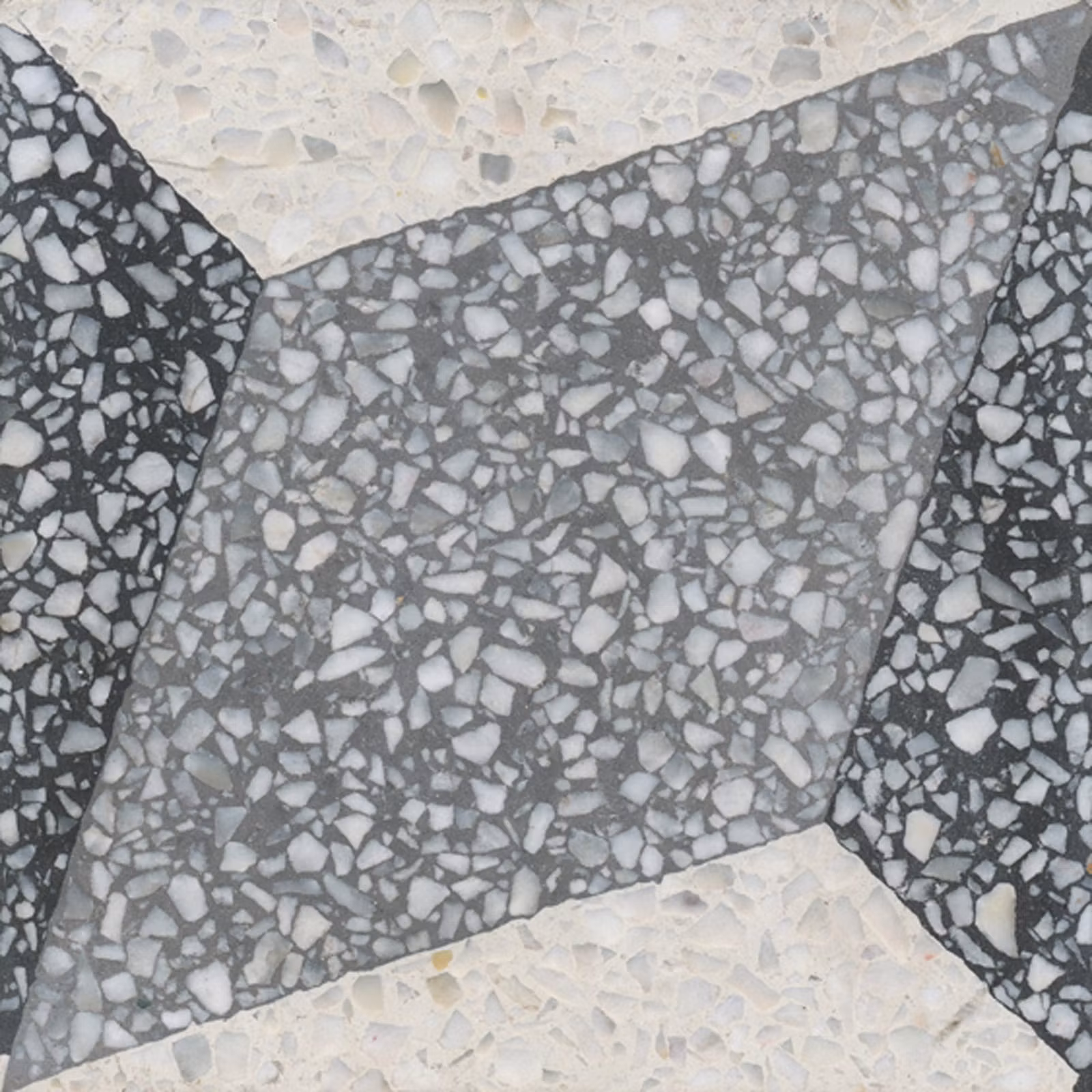 Den karakteristiska granuleringen gör att mönstren på terrazzoplattor inte ser exakt likadana ut.