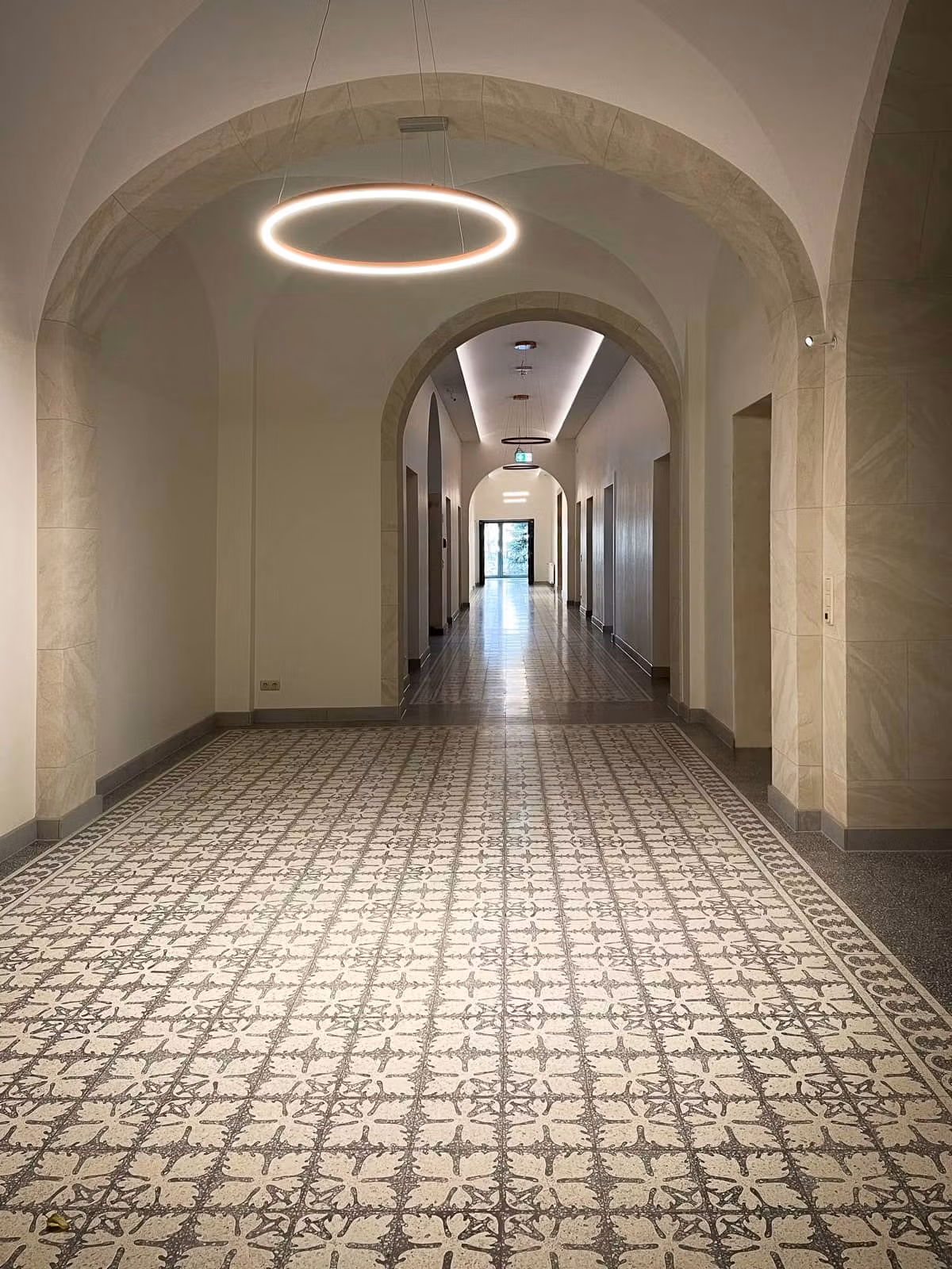 Den karakteristiska granuleringen gör att mönstren på terrazzoplattor inte ser exakt likadana ut.