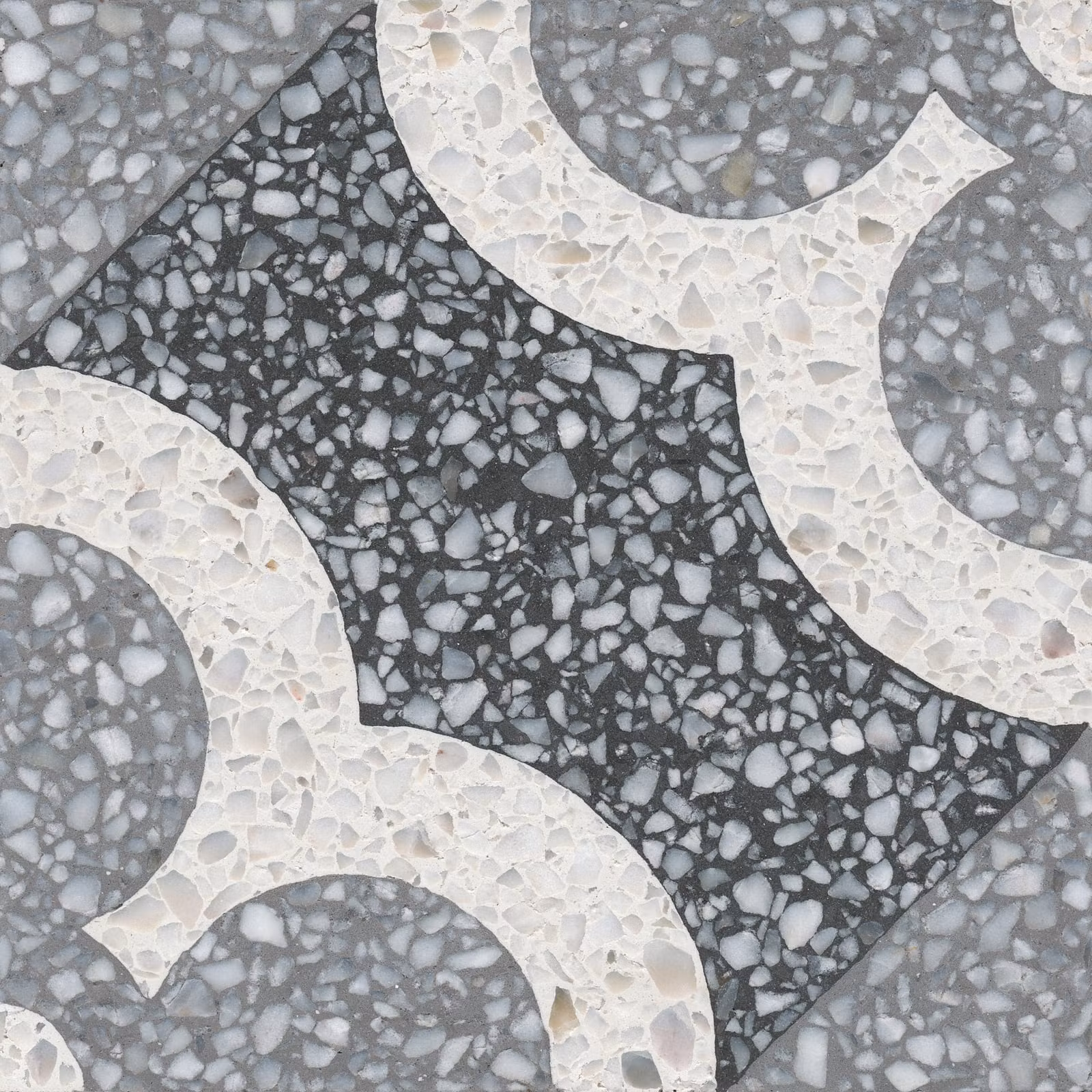 Den karakteristiska granuleringen gör att mönstren på terrazzoplattor inte ser exakt likadana ut.