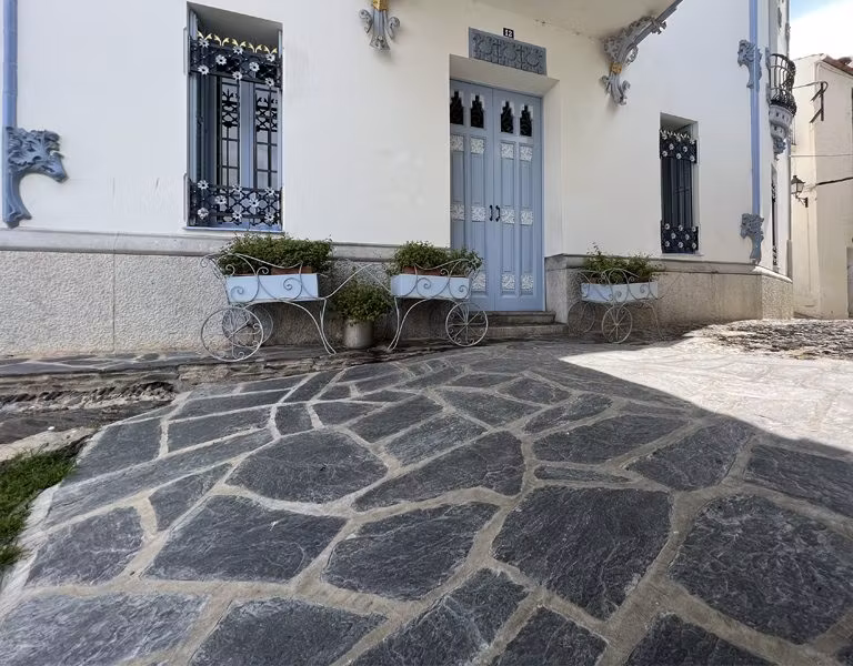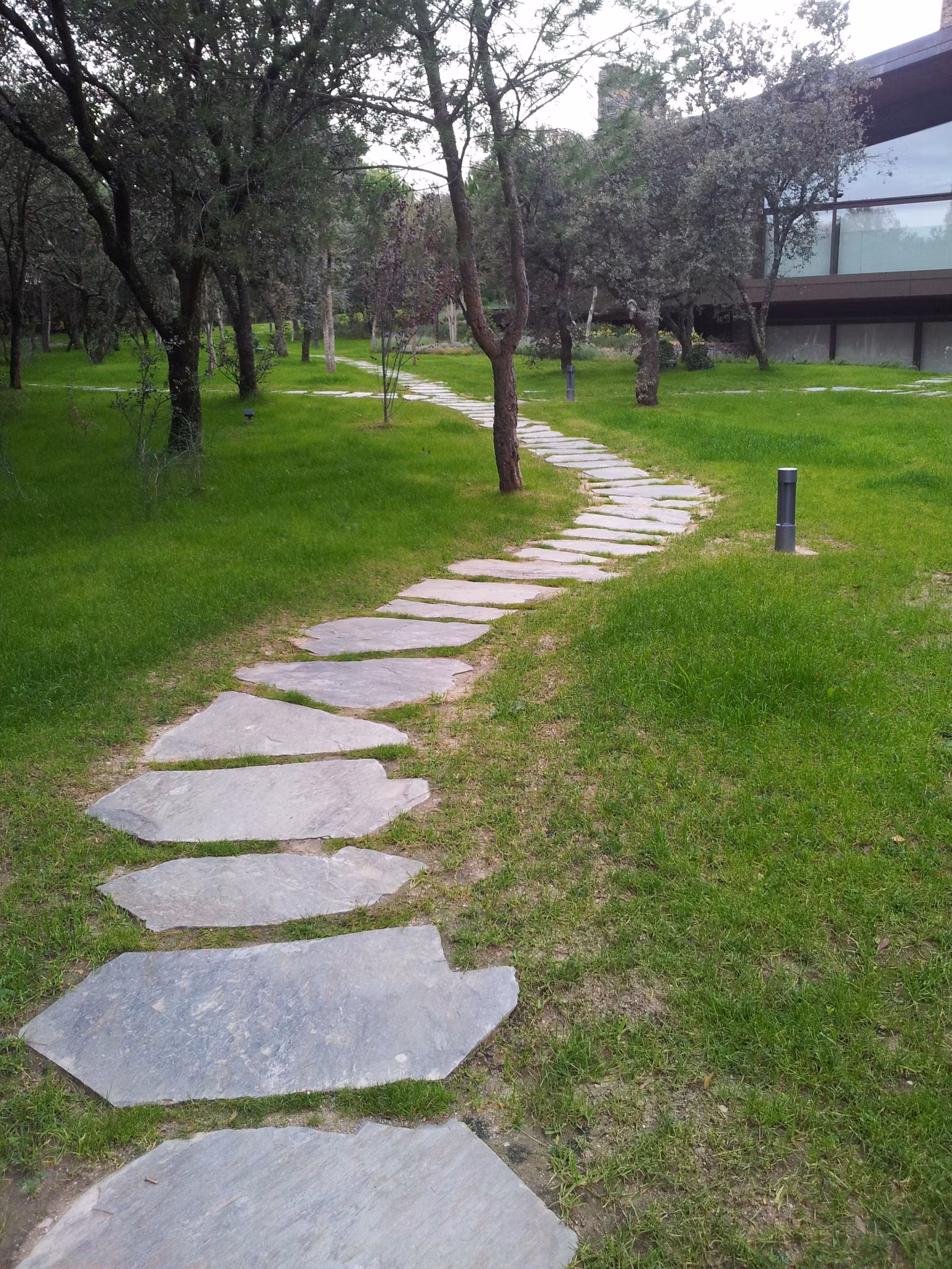 - Vid läggning av oregelbundna skifferplattor behöver man såga visa plattor till rätt form. Det görs för att kunna uppnå smala fogar och pussla ihop en yta med bra resultat. Använd med fördel en vattenkap som binder ev damm